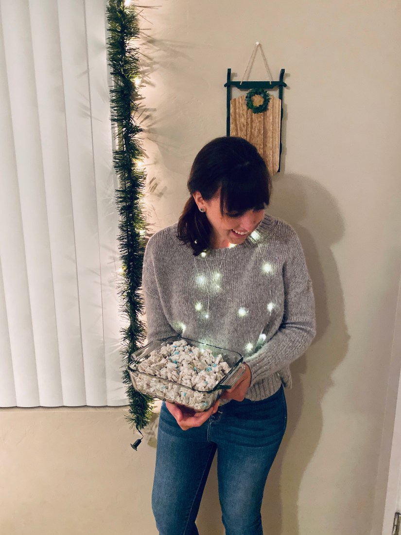 I recently made a yummy treat called Winter Wonder Muddy Buddies. It’s a simple recipe and perfect for parties or gifting holiday treats. I’ve attached the recipe here if you’re looking for something simple with a winter wonderland theme!