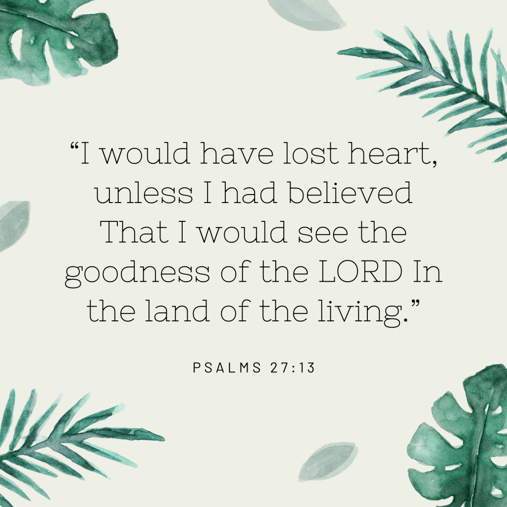 Even David needed to remind himself, in a time where it was hard to see it, that he would indeed see the goodness of God again as he had in the past. And when we choose to believe that He is good even when times aren’t, He strengthens & sustains us through the difficulties.